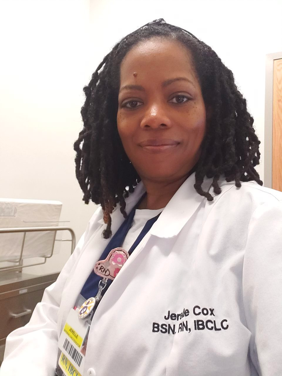 Jerelle Cox (she/her/mama) is a Registered Nurse, International Board Certified Lactation Consultant and Childbirth Educator with over two decades of experience in maternity, infant child health care, labor and delivery, NICU, and pediatrics.